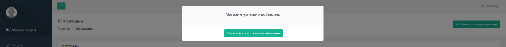 1. После того, как все данные будут заполнены, появится окно, уведомляющее об успешном добавлении магазина.