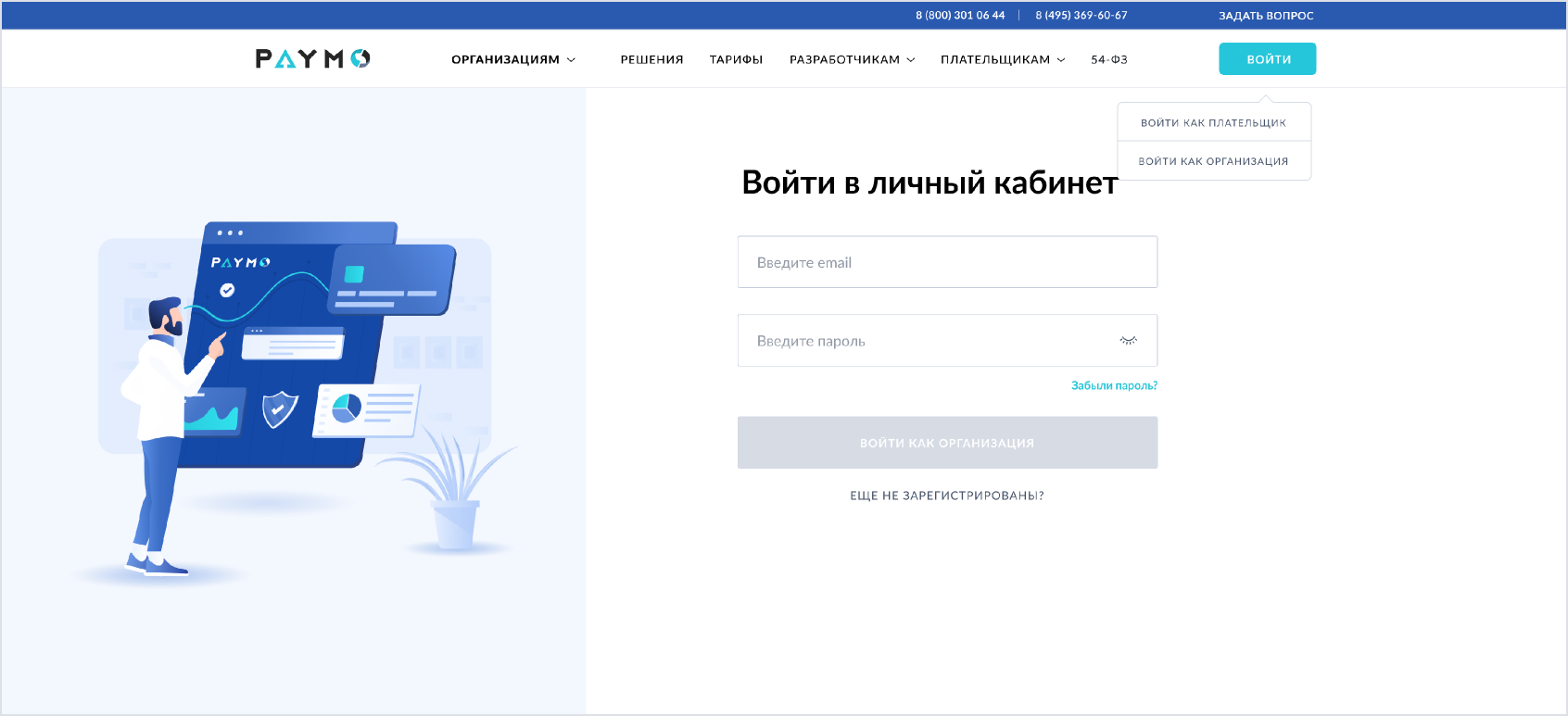выберите «Войти как организация» и затем нажмите кнопку «Еще не зарегистрированы?».
